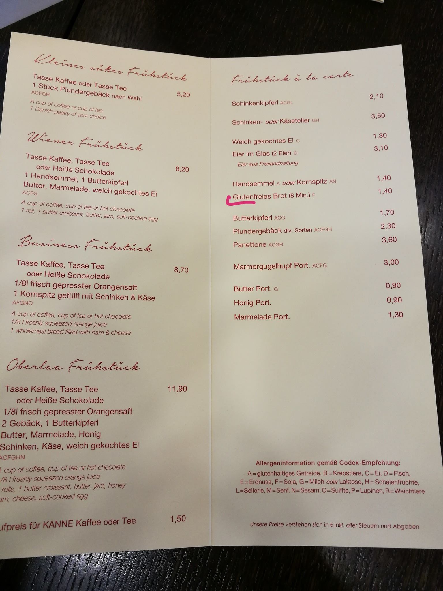 Také je potřeba si dávat pozor, protože alergeny nejsou v Rakousku číslovány, ale jsou označeny písmeny. Lepek se skrývá pod písmenem A a mléko G.